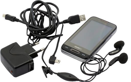 Коммуникатор поступил в редакцию в компании зарядного устройства, USB кабеля и стереогарнитуры. Весь набор был упакован в пластиковый прозрачный пакет. Зарядное устройство аналогично тому, что было в комплекте с RoverPC C7 отдельный блок для подключения к электросети с USB-совместимым разъемом. Таким образом, с его помощью можно заряжать любое устройство, поддерживающее зарядку через USB порт. Разумеется, в розничной продаже комплект куда полнее: есть и запасной стилус, и диски с ПО (включая навигацию), и документация, и microSD карточка на 1 Гб.