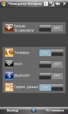 Работой модуля Bluetooth 2.0 с поддержкой EDR заведует операционная система Windows Mobile. Она же отвечает за взаимодействие с модулем Wi-Fi. Менеджер беспроводных соединений операционной системы имеет несколько видоизмененный интерфейс, упрощающий включение и выключение отдельных модулей связи. Проблем в работе с этими двумя распространенными интерфейсами не возникло: аппаратное обеспечение и программная обвязка обкатаны годами использования в различных коммуникаторах.