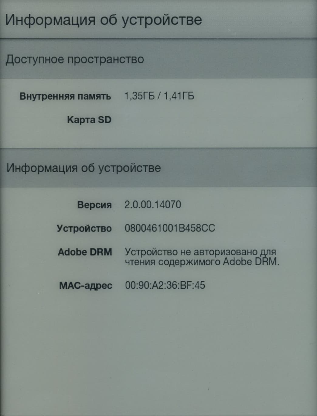 В нашу тестовую лабораторию электронная книжка попала в ритейл-упаковке, хотя первые партии отличаются от последующих тем, что здесь пользователю самому предлагается обновить прошивку для достижения оптимального результата. Таким результатом для нашего читателя является, конечно же, добавление возможности чтения FB2 — самого популярного в нашей стране формата для чтения с электронных устройств. На упаковке четко указано, что требуется обновление ПО. До обновления ридер способен читать лишь три формата: PDF, ePub (как с DRM, так и без) и TXT. Это безусловный минус данного устройства, ведь если, скажем, офисное приложение для работы с таблицами Excel здесь не слишком востребовано, то уж открыть документ в формате RTF или DOC любой уважающий себя наладонник сейчас просто обязан.