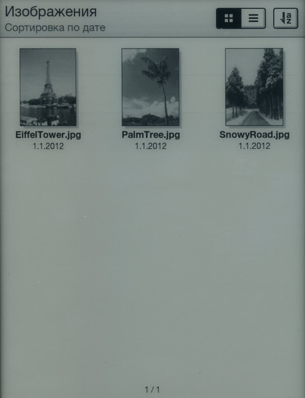 Встроенный просмотрщик фотографий читает самые распростаненные графические форматы: JPG, PNG, GIF, BMP.