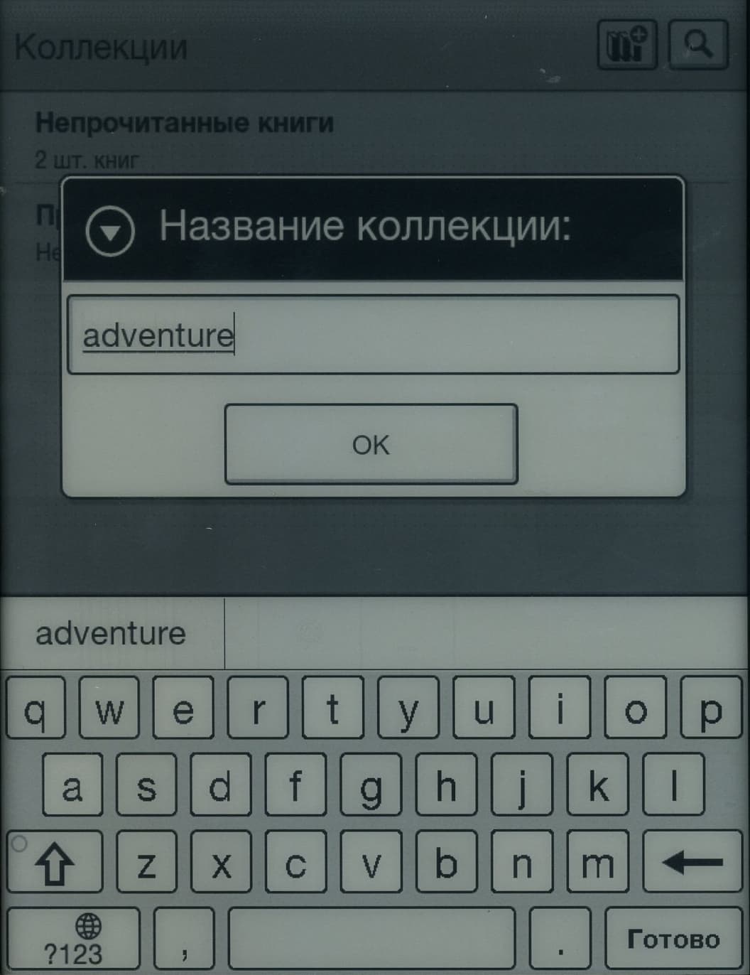 Упомянутый раздел «Коллекции» — это замена той самой структуры папок и подпапок, которой здесь нет. Работа с разделом предельно проста: одно нажатие — создаем новую коллекцию и даем ей имя. После этого новая коллекция появляется в списке данного раздела. Других возможностей, кроме поиска по книгам, здесь не реализовано. Само наполнение новой коллекции происходит путем расстановки галочек около каждой из выбранных книг. Если книг сотни, то сделать это затруднительно.