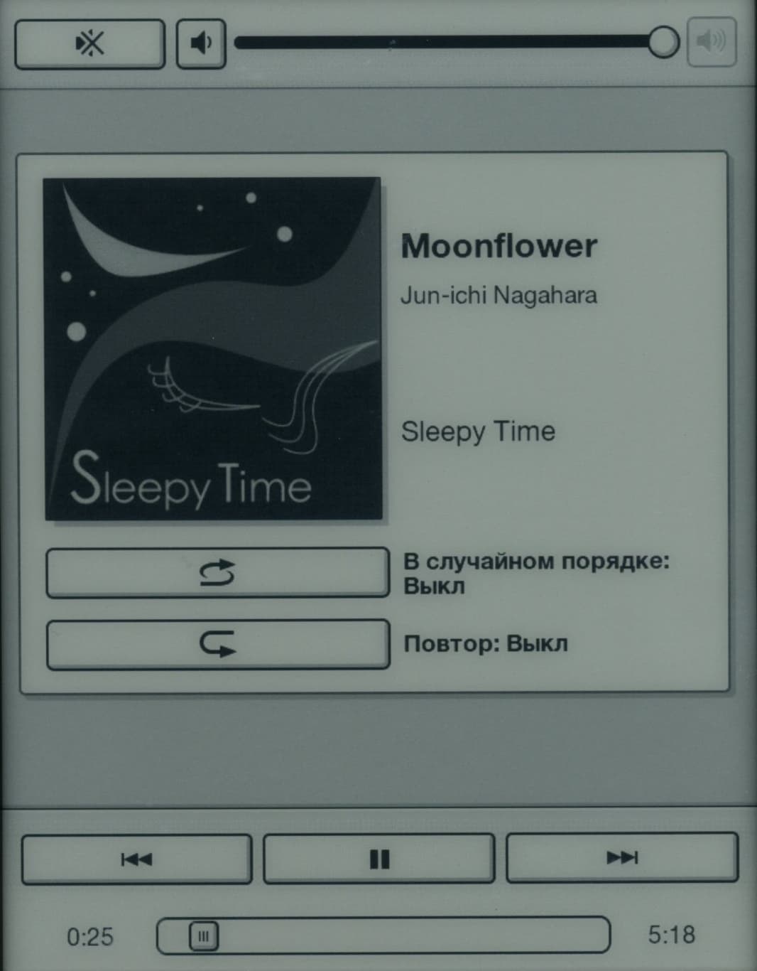Мультимедийные возможности Sony Reader PRS–T1 стандартны: есть встроенный музыкальный проигрыватель с простой функциональностью, но он будет звучать только с наушниками, так как никаких динамиков в устройстве нет совсем. Без наушников ридер не издаст ни звука — ни системного, ни мультимедийного.