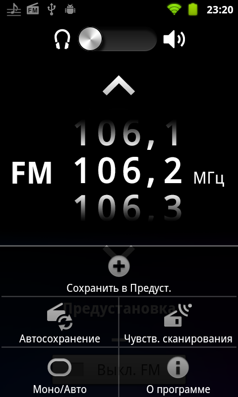 Наушники, подключенные к мобильному компьютеру, позволяют воспользоваться встроенным FM-радиоприемником. Программа управления приемником незамысловата, интерфейс лаконичен. Искать станции можно как в автоматическом режиме, так и вручную, частоту легко сохранить в ячейке памяти. Поддержка RDS отсутствует, звук выводится как на наушники, так и на динамик, качество приема среднее.