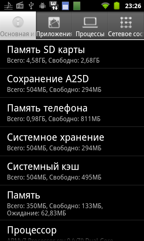 - Оперативная память 512 МБ, основная флеш-память 1 ГБ, дополнительная флеш-память 4,6 ГБ;