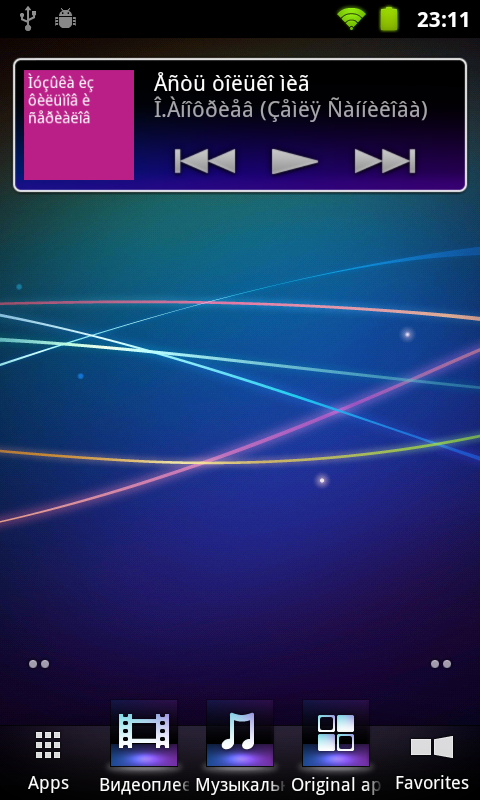 Иконки аудио- и видеопроигрывателей выведены на основной экран системы, рядом находится виджет для управления воспроизведением музыки.