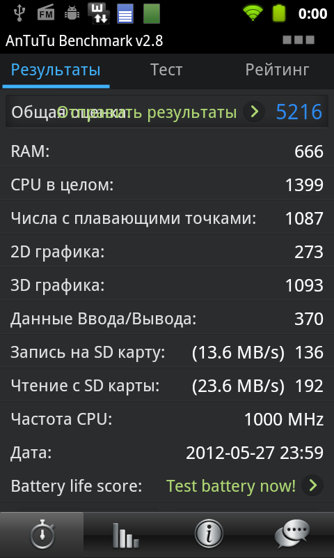 Далее представлены результаты еще нескольких тестов производительности, но общая картина возможностей аппаратной начинки героя обзора ясна. Карманный компьютер Sony Walkman Z1040 — далеко не чемпион, ни в одной из сфер мобильных вычислений и трехмерной графики, но комфортную работу системы, программ, игр и воспроизведение видео со стандартным разрешением он обеспечивает.