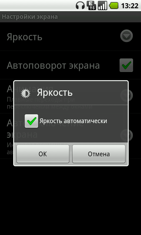 Подпункт настроек экрана содержит установки работы автоматической яркости подсветки и анимации включения/выключения экрана. Настройки ввода позволяют задать реакцию системы на нажатия различных стандартных клавиш. Меню настроек интерфейса позволяет задать количество и вид дополнительных кнопок в панели управления системой, выбрать число значков в строке состояния, установить эффект и режим работы функции перепрокрутки списка.