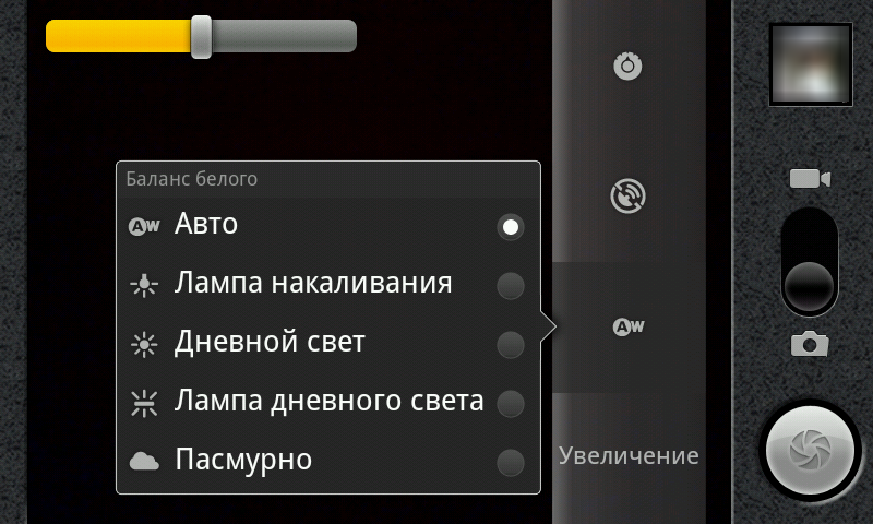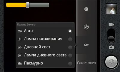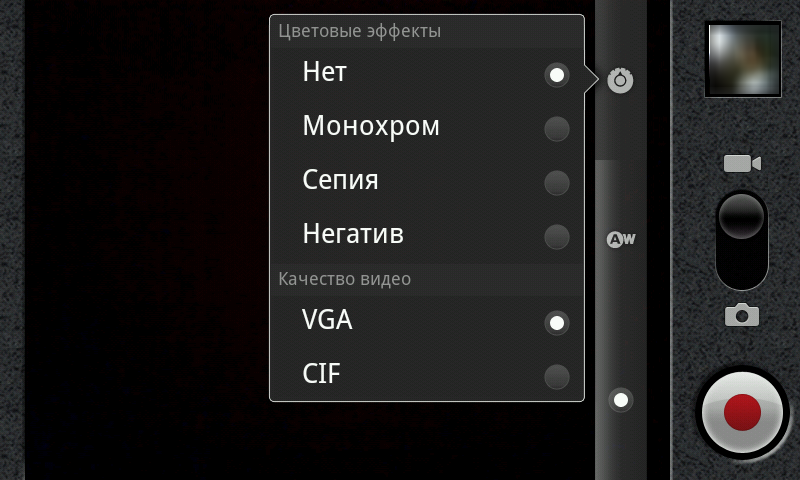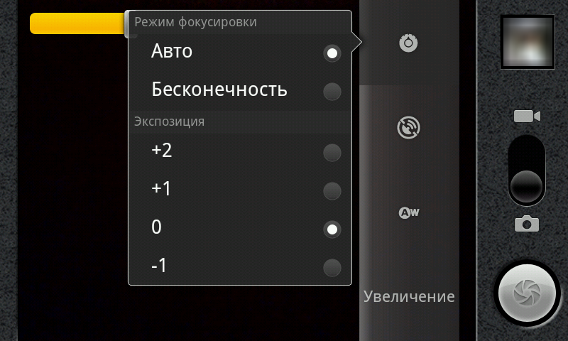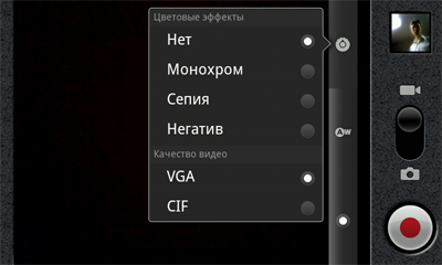 Программа управления камерой в этой прошивке стандартная, входящая в саму операционную систему. С её помощью можно выставлять различное разрешение съемки, баланс белого, спецэффекты. Поддерживается автофокус и запись навигационных координат. Интерфейс управления очень прост, хотя значки кажутся мелкими при таком разрешении экрана.