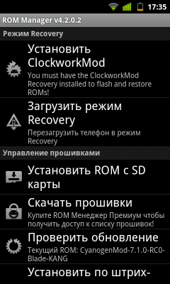 Теперь же о недостатках CyanogenMod, которые в итоге перевесили его достоинства. Поскольку для ZTE Blade не существует официальных прошивок с Android 2.3 и нет «родной» версии этой ОС, которую можно менять и дорабатывать, для CyanogenMod была выбрана свободная версия операционной системы, модифицированная и соответственно измененная. Отсюда многочисленные проблемы с взаимодействием с аппаратным обеспечением. Например, вообще отсутствует поддержка FM-радиоприемника. Значительные проблемы с работой датчиков внешней освещенности и приближения, которые то работают, то не работают в зависимости от версии сборки прошивки. Тоже самое с Wi-Fi, акселерометром. Скачут показатели автономной работы и производительности.