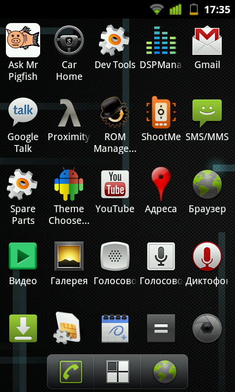 В качестве замены стандартному оформлению и основным экранам системы используется ADW.Launcher. Он позволяет более тонко настраивать вид всех вкладок и меню.