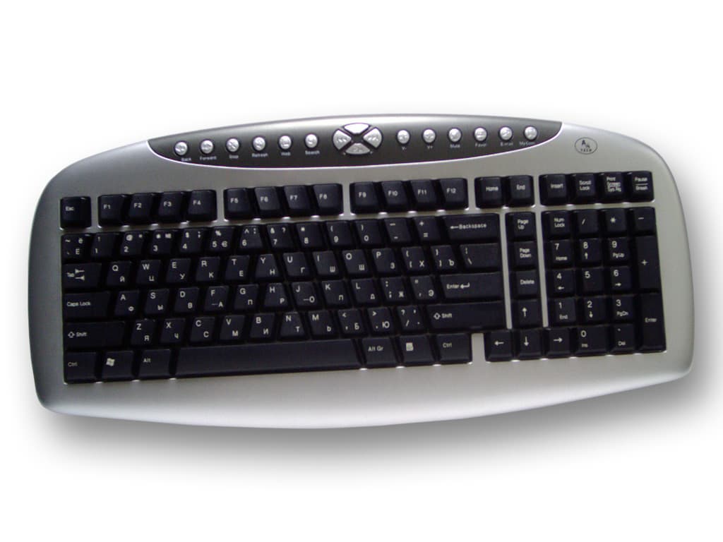 Дизайн клавиатуры выполнен в стиле последних моделей клавиатур A4Tech. Основной цвет корпуса алюминиево-серебристый. Дополнительные мультимедиа-кнопки матовые, а не блестящие, как это было в случае KBS-2548. Всего их шестнадцать. Восемь предназначены для управления интернет-браузером и почтовым клиентом, четыре мультимедиа-плеером, три громкостью, и еще одна кнопка это My Computer. Все дополнительные кнопки очень удобно расположены в один ряд и, как я уже писал выше, на мой взгляд, такого их набора должно хватить большинству пользователей.