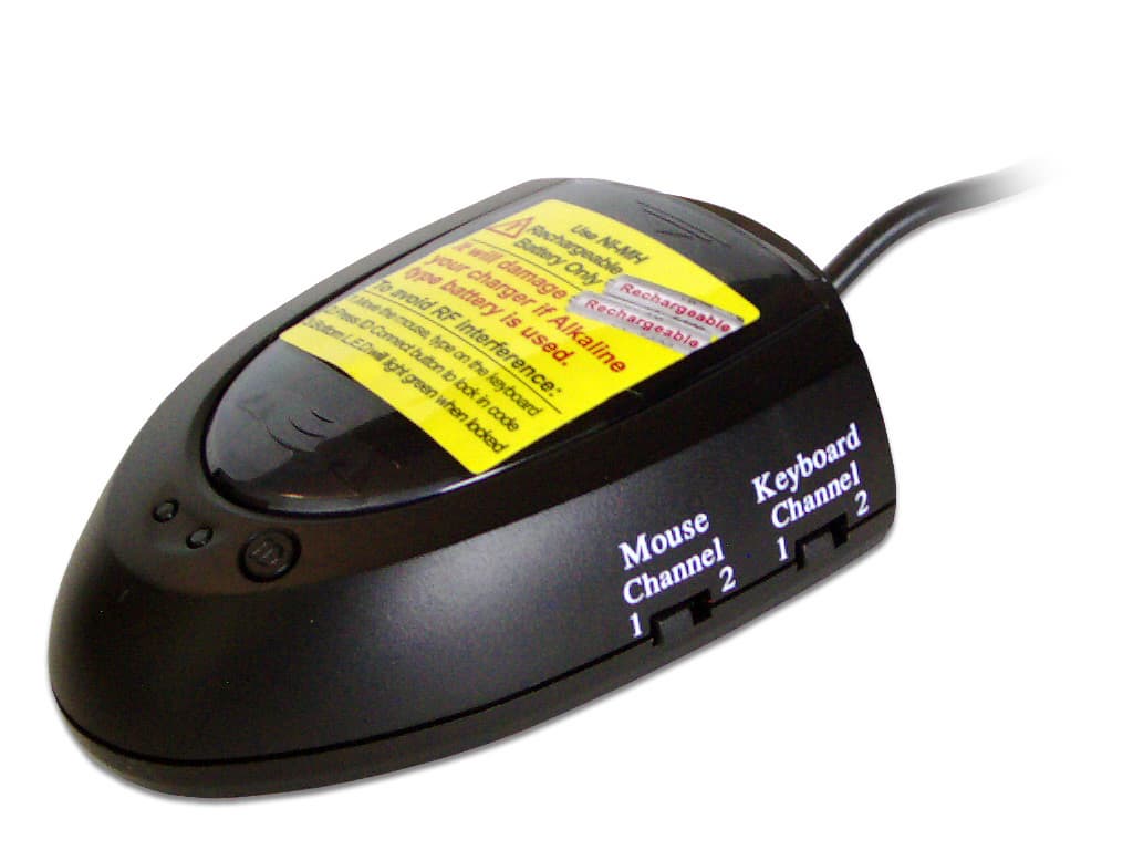 Так же, как и в случае приемника из недавно рассмотренного набора A4Tech KBS-2348RPC, на крышке приемника имеется желтая наклейка с надписью, предупреждающей пользователя о том, что зарядное устройство предназначено исключительно для зарядки в нем аккумуляторных NiMH батарей. К сожалению, не все пользователи читают то, что написано в инструкциях по эксплуатации и на самих устройствах. В результате, как мне известно, нередки случаи, когда в зарядное устройство устанавливались обычные солевые или алкалиновые батареи. Естественно, не рассчитанное на это зарядное устройство, с большой долей вероятности выходит из строя. А так как это произошло по вине пользователя, то он теряет возможность гарантийного ремонта набора.