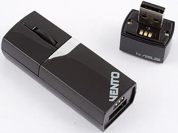 Шли годы… Никто из производителей почин Mitsumi не поддержал, да и звезда компании в качестве производителя компьютерной периферии закатилась. Казалось, что достаточно интересная идея так и канула в лету под натиском вполне обычных (пусть и немного уменьшенных в размерах) ноутбучных мышей. Однако истории свойственно развиваться по спирали, так что одним из самых интересных экспонатов CeBIT 2008 оказались мыши Vento ASUS MS-71. Надо заметить, что дизайнеры тайваньской корпорации существенно превзошли селекционеров из Mitsumi — их устройство имеет размеры всего 68,8 х 25,1 х 17,5 мм в рабочем положении, а в «походном» она ровно на 15 мм длиннее. Причем для Mitsumi 70 х 28 х 31 мм это лишь размеры самой мыши — еще есть и кабель, длиной 74 см со стандартной USB-вилкой, а манипулятору от ASUS последний не нужен. Да, именно так — дизайнеры умудрились поместить в столь компактные размеры беспроводную мышь! Со встроенным аккумулятором, которого хватает более чем на день использования, и схемами его зарядки. Чудеса, да и только. Давайте познакомимся с мышью более подробно.