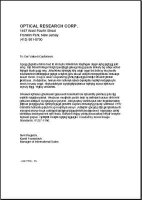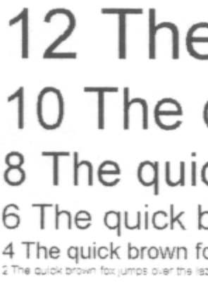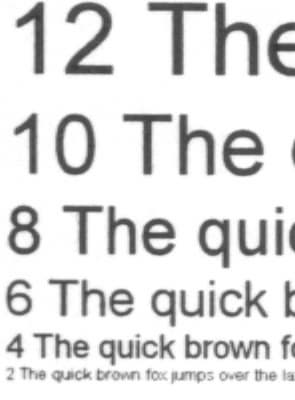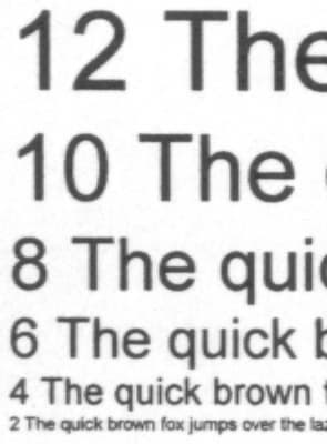 Вплоть до третьего кегля шрифты читаются великолепно, даже на втором кегле легко читаемы все шрифты, кроме «Курьера» при попытке печатать столь тонкие линии, принтер выходит за пределы возможностей тонера и обычной офисной бумаги. Качество прорисовки больших букв прекрасно.