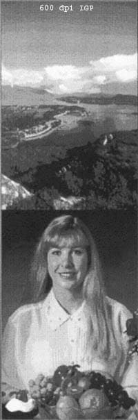 По-моему, результат теста виден прекрасно: параметр IGP, позволяющий печатать на высоком разрешении однобитные изображения (схемы, линии) абсолютно неприменим к фотографиям полутоновый переход имеет ярко выраженные «ступеньки». Необходимость докупать дополнительную SIMM-память не оставляет выбора вплоть до ее покупки 600dpi.