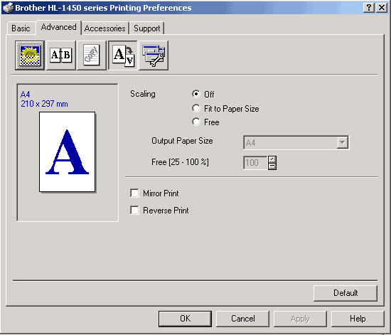 Настройки PS-драйвера стандартны и ничего нового туда японцы не внесли. Более интересны настройки PCL-драйвера.