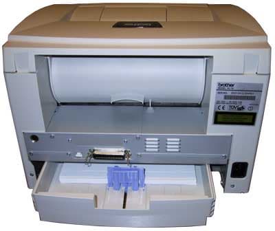 То, что я увидел сзади, меня сначала огорчило: место и так всегда ограничено, а здесь еще и лоток, рассчитанный на бумагу более длинную, чем А4, съедает жизненное пространство. Однако, подсоединив необходимые провода, я понял, насколько элегантно Brother решил проблему залома проводов. Размеры лотка ни больше, ни меньше, чем это необходимо для защиты всех кабелей. Хотя вопрос с запыленностью бумаги остается открытым...