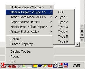 Наиболее интересна галочка Quick Print Setup если ее отметить, то в трее появится новая иконка быстрых настроек принтера:
