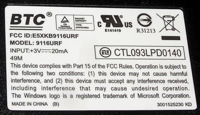 Честно говоря, возникает резонный вопрос, почему в эпоху расцвета цифрового Bluetooth был выбран устаревший аналоговый радиоканал? Иначе спектр применений BTC 9116URF можно было заметно расширить портативными компьютерами и домашними центрами... Тем более что очень экономичных Bluetooth-мышей на рынке уже много, да и «клавы» встречаются. Или разработчики побоялись трудностей реализации Bluetooth, и не нашлось подходящих инженеров/программистов? Впрочем, простой ответ на этот вопрос скрывается под корпусом изделия: надписи на печатных платах приемника и самой клавиатуры ясно свидетельствуют, что внутренности «новинки» датированы концом 2003 и началом 2004 года, когда дешевый и распространенный нынче Bluetooth находился в зачаточном состоянии. ;) Да и комплектный софт далеко не свежий.
