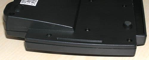 Да и, признаться, держать ее на коленках (придерживая за «ушки») удобнее, чем на столе. (Толщина задней части клавиатуры определяется, видимо, конструкцией джойстика, см. фото.) Две передние ножки — резиновые. Подставка для кистей рук также отсутствует — нет ни встроенной, ни пристегиваемой. Но если учесть, что BTC 9116URF все же наколенный, а не настольный «зверек», то это даже хорошо. Впрочем, что за «подставку» для рук можно с натяжкой принять небольшой выступ спереди, который немного сглаживает «ступеньку», хотя как опора для рук она совершенно непригодна и послужит скорее как еще одно «ушко» при удерживании и переноске клавиатуры.