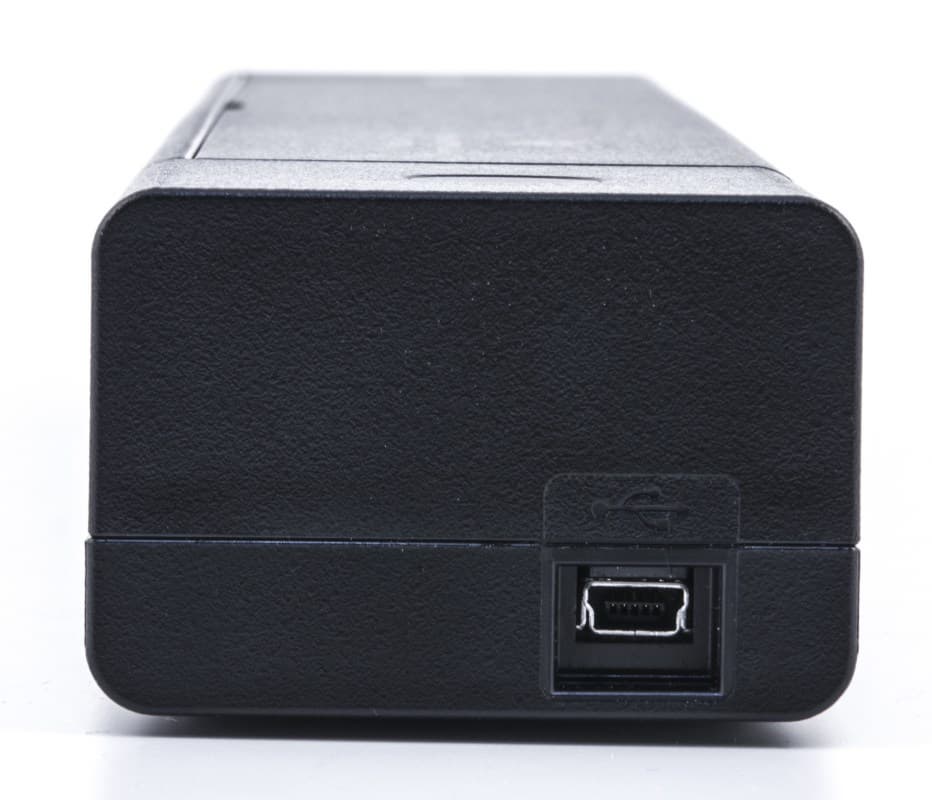 На ближайшем торце размещен разъем Mini-USB типа B для подключения к компьютеру: