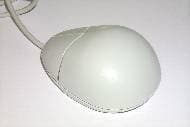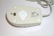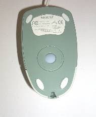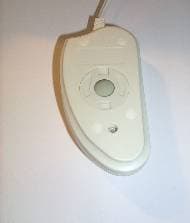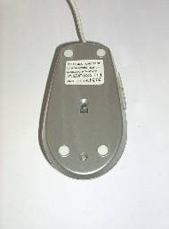 Как и каждая мышь этого обзора, данная модель не похожа ни на одну другую. Третья представительница имеет овальную форму. Две кнопки, из них левая со специальным углублением для пальца, имеют внушительный размер — они занимают чуть меньше половины верхней части корпуса. Как и нижняя часть мыши, сами кнопки серого цвета, в отличие от остальной мыши, которая имеет светло-серый цвет. Мышь удобно лежит в руке, поддерживая ладонь благодаря приподнятой задней части корпуса. Не очень удобно оказалось манипулировать мышью левой рукой, поскольку углубление на левой кнопке предназначено для указательного пальца правой руки, но симметричность корпуса вполне позволяет это сделать, надо только привыкнуть. Интерфейсный кабель длиной 1,45 м заканчивается PS/2 разъемом. А если обратиться к нижней части мыши, то можно обнаружить небольшую особенность, а точнее небольшое дополнительное приспособление, которое не встречалось ранее. Это белая съемная пластиковая заглушка на отверстие для шарика. Ее вероятное назначение — предохранение шарика от загрязнения в свободное от работы время.