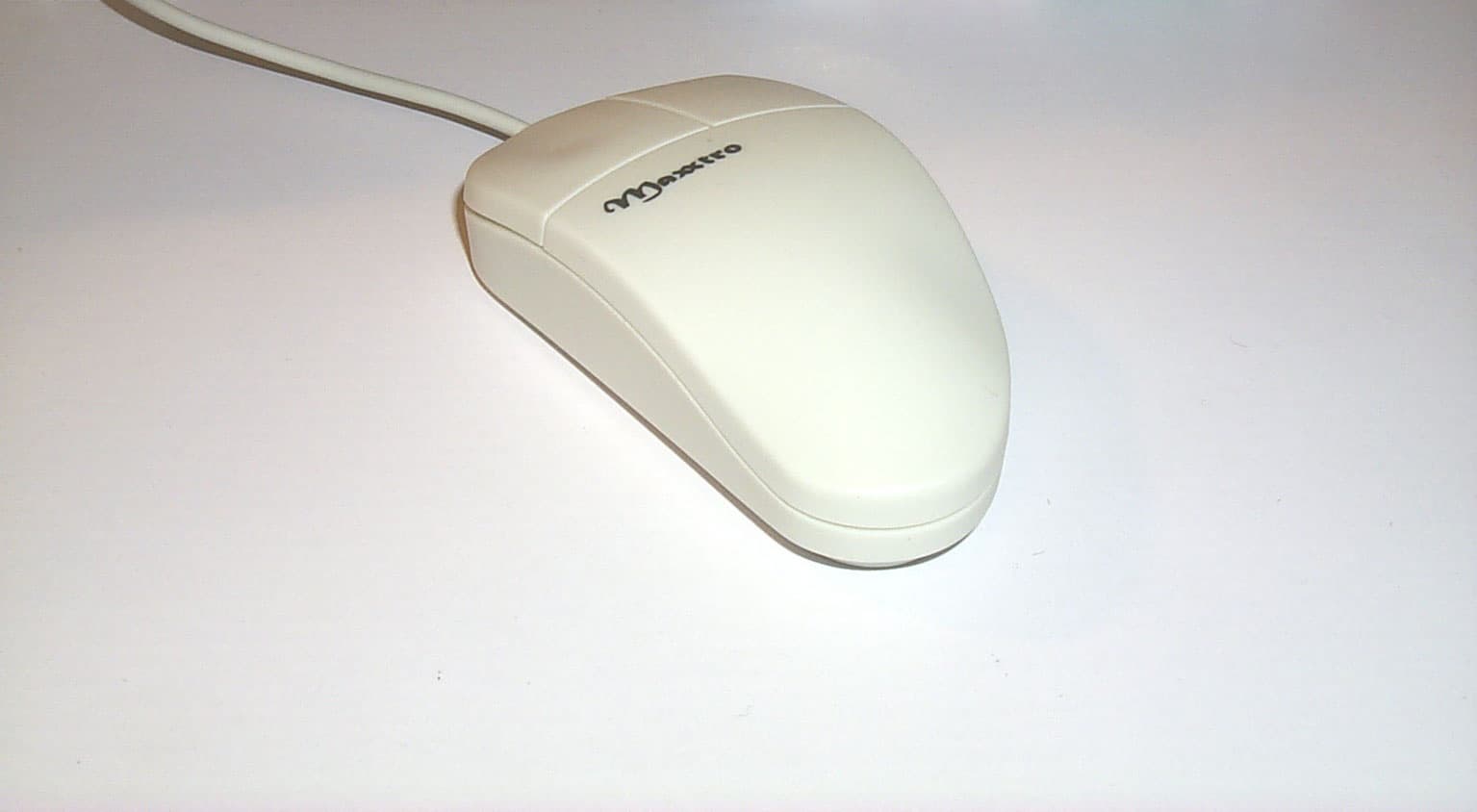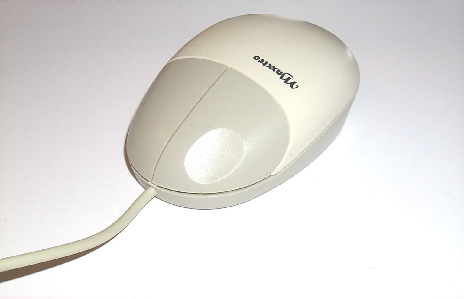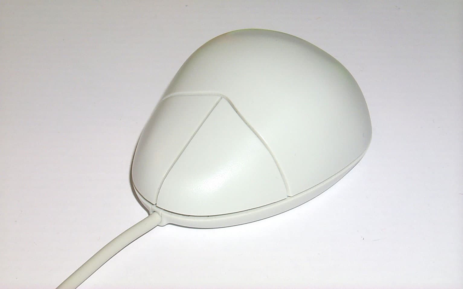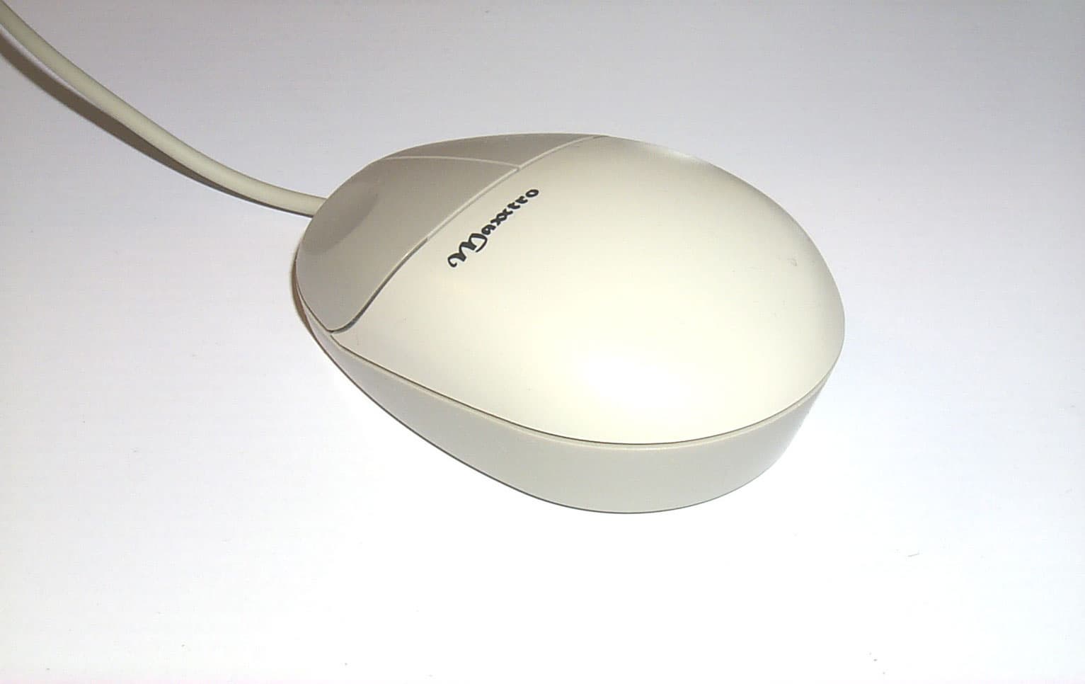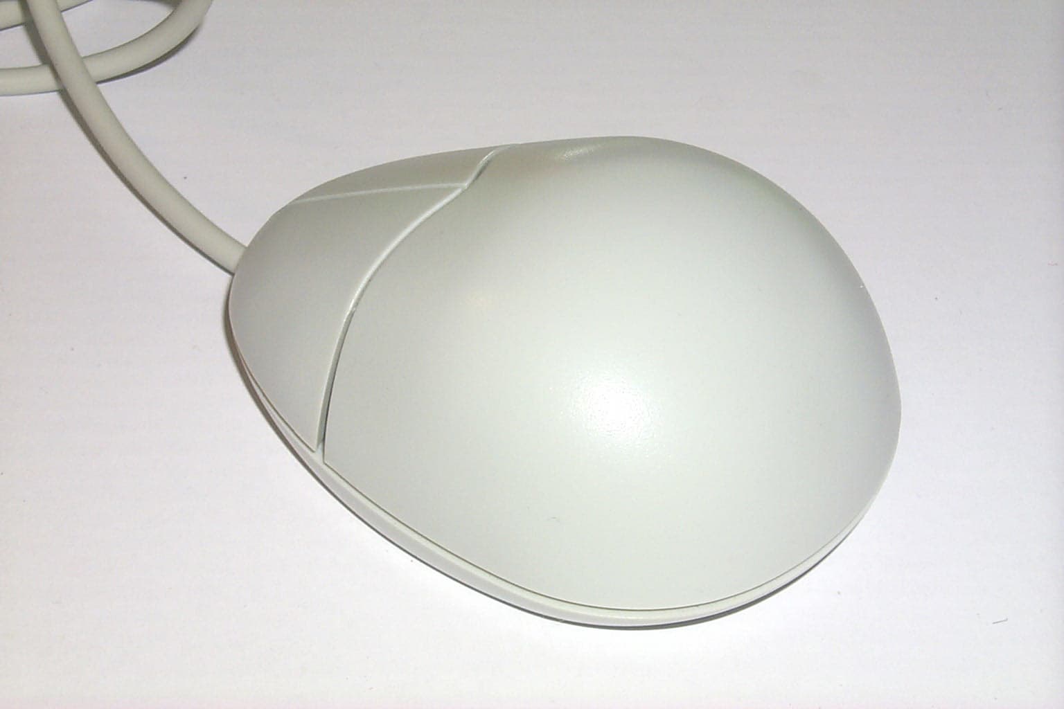 Вторая мышка с белой матовой поверхностью и продолговатой обтекаемой формой, весьма удобная для руки. Широкая вначале и суженная к концу, имеющая изящную изогнутую форму, она создана для правой руки. Но несмотря на это, в левой руке она не вызывает дискомфорта при использовании. Мышь снабжена двумя кнопками, причем левая в полтора раза больше правой и с небольшим углублением для пальца. Интерфейсный кабель длиною в 1,44 м заканчивается PS/2 разъемом.