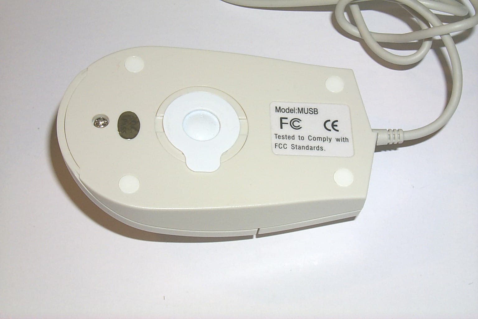 Эта мышка — последняя, у которой мы встречаем ту же белую съемную пластиковую заглушку на отверстие для шарика. Другой особенностью, как мне показалось, была незначительная высота ножек мышки. Они практически не выступают над нижней частью корпуса, потому что почти целиком находятся в углублении, сделанном специально для них.