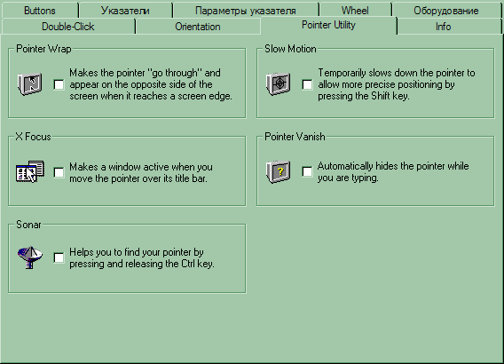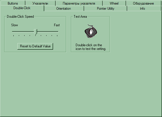 Ничего особенного про закладку Double-Click сказать нельзя: действительно, настраивает скорость двойного щелчка. Для чего делать отдельное окошко для поддерживаемого штатно средства? Дело в том, что сгруппировать его с теми же настройками, что и в стандартном диалоге не получается не влезло :)