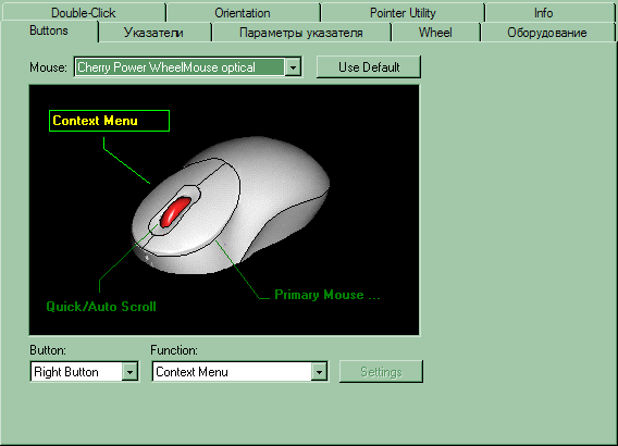 Настроить поведение колесика можно и при использовании штатных драйверов, однако закладка Wheel позволяет сделать это более гибко. Стандартной возможностью является настройка точности прокрутки, большинство производителей давно поддерживают и изменение направления на противоположное. Здесь же можно настроить поведение колесика как кнопки (по сути, этот пункт дублирует возможности первой закладки, однако подобное дублирование вполне логично и достаточно удобно): можно оставить Auto Scroll, можно назначить какое-либо иное действие. Впрочем, последнее нужно лишь, если вам совсем недостаточно кнопок: в отличие от Logitech MouseWare, где для нормальной работы колесику следует в обязательном порядке присваивать среднюю кнопку мыши, Cherry вполне обходится и без этого. Все дело в квалификации программистов, от чего компания никогда не страдала. В результате, как это и должно быть (но, к сожалению, крайне редко выполняется) настройки конкретного приложения имеют приоритет над выбранными глобальными установками. Переводя на русский: если программа умеет использовать среднюю кнопку самостоятельно, софт от Cherry мешать ему не будет! Особенно это удобно в браузерах Mozilla/Mozilla Firefox/Netscape: нажатие скроллера в свободной области окна вызывает Auto Scroll (идентично Internet Explorer), а вот если кликнуть им на гиперссылке получим действие, заданное в самом браузере (обычно это открытие ссылки в новом окне или табе).