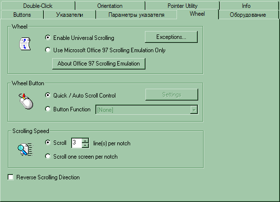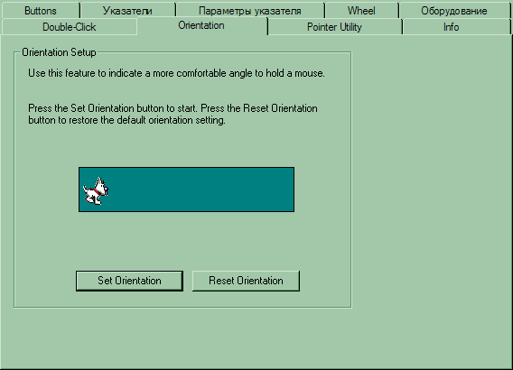 Закладка Orientation предназначена для тех, кому мышь удобнее возить под отличным от стандартного углом. Пара минут, и диагональ из угла в угол стола будет превращаться в ровную горизонтальную линию на экране.