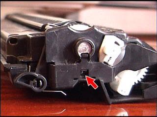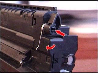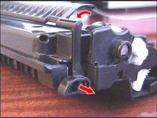 - проверяем, ослаблены ли защелки (картридж все еще должен лежать барабаном вверх);
