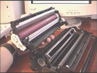 Не раз встречал мнения знающих людей, что использование восстановленных картриджей может привести к поломке аппарата (к примеру, прочтите статью «О пользе соблюдения инструкций, или бесплатные советы»). В частности говорится о некачественном тонере, оседающем на различных механических и нагревательных элементах конструкции. Не спорю, очень даже может быть, оно и так. Однако расскажу историю из личной практики. Офис некрупной торговой фирмы. Простой копир Canon с минимальными возможностями из начальной серии FC-200. В день выполняется до полусотни копий. В итоге картридж приходилось заправлять минимум раз в месяц. Через два неполных года эксплуатации аппарат скоропостижно скончался, и никто не знает, почему это случилось. Возможно, все действительно из-за кустарных картриджей, а может, из-за предельного режима работы или из-за радиатора отопления, проходящего в десяти сантиметрах от корпуса