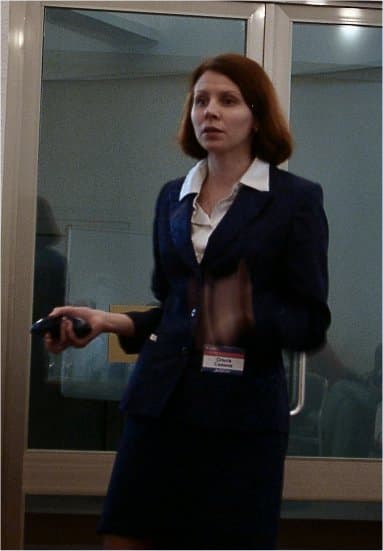 Ольга Савина, менеджер по маркетингу компании «Alion!» проводит презентацию, используя Logitech Cordless Presenter
