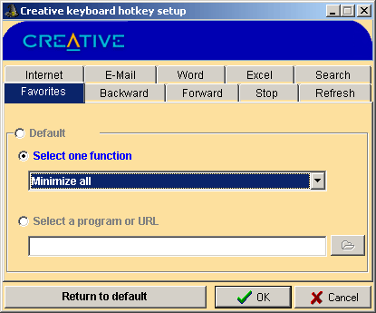 Левый блок из шести кнопок предназначен для управления веб-браузерами. Крайнюю слева перенастроить нельзя, остальные пять можно. Первая кнопка открывает панель поиска при запущенном браузере, второй положено открывать «Избранное» в IE или закладки в Netscape, но вот признавать Mozilla Firefox за Netscape она у меня отказалась, за что и была переопределена. Далее расположены кнопки перехода на предыдущую и следующую страницы, прерывания операции и обновления текущей страницы. В общем, стандартная функциональность.