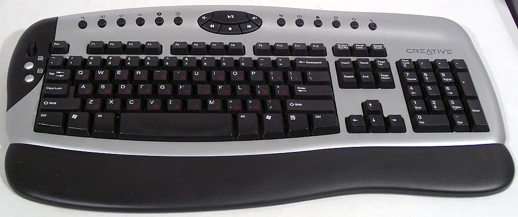 На первый взгляд, все очень неплохо выглядит. Creative удалось сохранить классическую раскладку с «узким» Enter (зато шрифты нормального размера, а также блоки редактирования и управления курсором имеют стандартное расположение) и не сильно отличающиеся от «обычных» клавиатур размеры (501 х 210 × 45 мм при массе 850 грамм), уместив на клавиатуре 20 дополнительных кнопок и колесико прокрутки, так же пригодное к тому, чтобы его нажимали. Единственные ограниченные в размерах клавиши функциональные, хотя это тоже стало привычным (тем более, их уменьшение по высоте на удобстве работы не сказывается). «На ощупь» это стандартная мембранная клавиатура с обычным ходом клавиш, что, скорее всего, понравится тем, для кого она станет первой, отличной от стандартной трехдолларовой модели, нужно будет освоить лишь дополнительные кнопки, не меняя стандартных привычек при работе с основными (что очень редко выполняется в случае мультимедийных или даже простых тонких клавиатур). Но о дополнительных кнопках мы поговорим позднее когда будем разбирать программное обеспечение (благо без него функционируют лишь редкие из них, типа управления громкостью, которые очень давно уже обходятся стандартными драйверами Windows), а пока закончим с основным блоком. Порадовать он ничем особо не порадовал (разве что стандартностью), а вот огорчить успел изрядно.