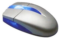 Что в мыши заслуживает особого внимания, так это дизайн. Спинка и кнопки выполнены из серебристой пластмассы, нижняя же часть синяя полупрозрачная, вставочка около колесика (разделяющая кнопки) тоже полупрозрачная синяя. Само же колесико странным образом блеклое, но тоже полупрозрачное. Зачем? О! Это сразу понятно после включения мыши в ней используется мощная подсветка синего цвета. Ярко светится колесико, чуть более тускло боковины и середка. В общем, то, чего моддеры достигают своим трудом, Creative предлагает приобрести в готовом виде. На этом фоне как-то странно, разве что, выглядит красный светодиод в оптической системе, но его и не видно, если мышь со стола не поднимать. Особенно красиво все выглядит вечером в полумраке или при искусственном освещении; на ярком солнечном свете подсветка становится менее яркой и менее интересной.