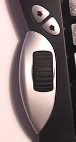 В левой части клавиатуры находится уже упомянутое подобие панельки iNAV у Cordless Desktop MX. Правда, кнопки Back и Forward браузера находятся не на серебристой вставке, как это реализовано у Logitech, а посажены чуть выше. А на вставке разместилось только колесико скроллинга, и мы можем понять дизайнеров D-Computer, поднявших кнопки выше — ведь колесо прокрутки не просто большое, а очень большое по размерам :) Для меня так и осталось загадкой: чем было мотивировано решение сделать его столь крупным, но мириться с этим придется. Колесико, кстати, также является кнопкой, при нажатии на которую открывается контекстное меню для конфигурирования клавиатуры и добавления ярлыков с целью запуска программ посредством данного меню. | ![]() |