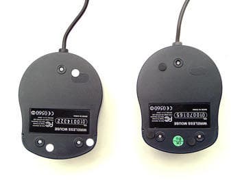 Размеры, форма и цвет корпуса приемника Defender 1210 и приемника Maxxtro Wireless Radio Frequency Mouse одинаковы. Но если у самих мышек различались только логотипы, нанесенные на корпус, то у их приемников есть еще одно отличие. Отверстия для саморезов, расположенные в нижних крышках корпусов, в обоих случаях закрываются самоклеющимися ножками, на которые устанавливаются приемники. Так вот, тогда как приемник Maxxtro имеет тонкие фторопластовые ножки, приемник Defender оснащен более высокими и серьезными резиновыми ножками. При этом, соответственно, он меньше скользит по поверхности, на которую установлен.