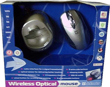 А вот перед нами и виновница сегодняшнего торжества — беспроводная радиомышь Defender 1400. Сине-белая картонная упаковка с прозрачными пластиковыми вставками. Через них вы, покупая сей продукт, можете воочию убедиться, что приобретаете именно то, за что отдали часть своего, я надеюсь, не маленького заработка. Убедились? Мышь и приемник в коробке видны? Если да, то берите эту коробку и скорее несите домой, дабы там получить некоторое удовольствие, воспользовавшись ее содержимым.