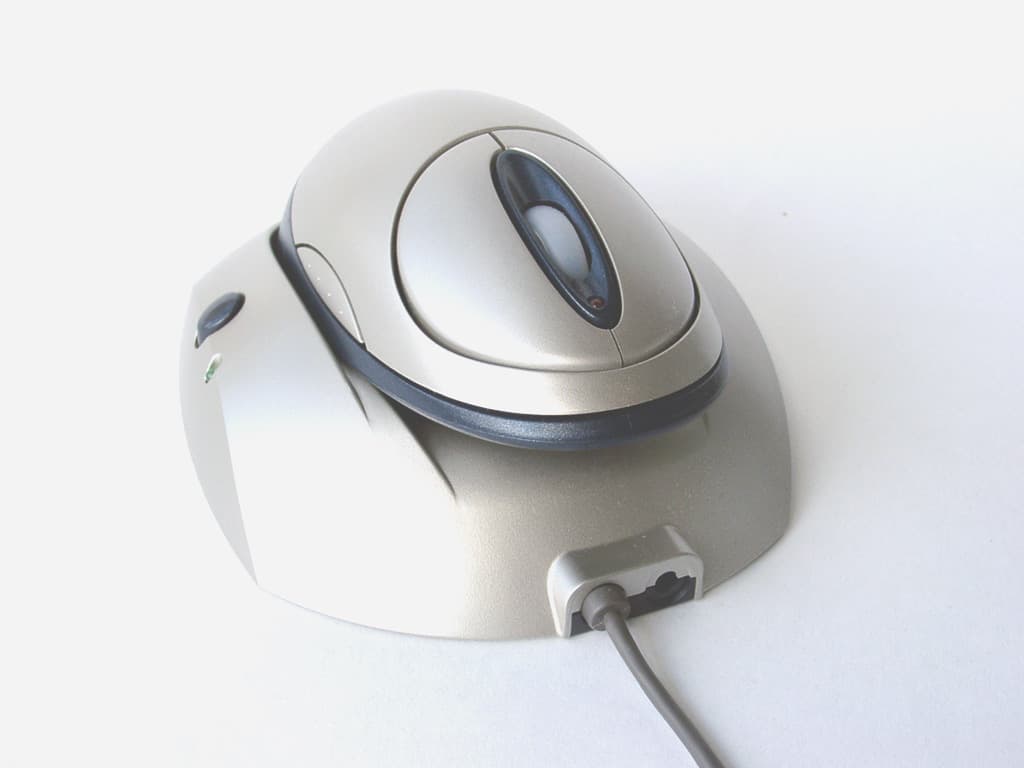 Разъем для подключения блока питания находится на корпусе рядом с местом выхода интерфейсного кабеля. Но постоянной потребности в питании от внешнего блока нет. Он необходим только в те моменты, когда мышь установлена на приемник для зарядки аккумуляторов, от которых она и питается. В остальное время блок питания можно выключать, так как сам приемник питается от USB порта.