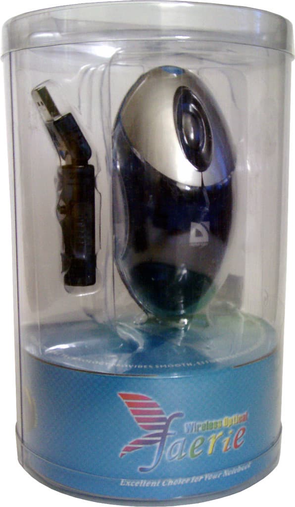 Очень даже небедный комплект. И не зря производитель заявляет о том, что данная мышь будет неплохим выбором при работе с ноутбуком (именно это заявление красуется на коробке). Набор кабелей для подзарядки на любой случай жизни, и действительно лишенный каких-либо проводов путь от мыши до порта компьютера должны сделать Defender 1480 очень привлекательной для владельцев портативных ПК. Кстати об упаковке. Ко мне эта мышь попала в восхитительном прозрачном пластиковом «бочонке», фотографию которого я просто не могу вам не привести. По информации представителей компании ТОР, которая является дистрибутором торговой марки Defender, к моменту поступления в широкую продажу дизайн упаковки будет изменен. Будет он лучше или хуже мы, я думаю, в скором времени увидим.