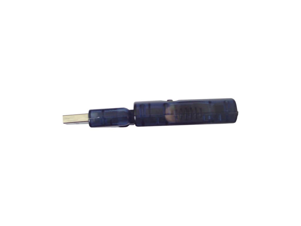 Приемник мыши стал настоящим сюрпризом. Производитель вовсе не зря заявляет о прекрасном сочетании Defender 1480 с ноутбуками. Судите сами — приемник настолько мал, что, будучи подключенным к USB-порту вашего портативного ПК, практически ничем не будет вам мешать. Он выполнен из полупрозрачного пластика голубого оттенка, а его максимальные габариты таковы: длина — 92 мм, ширина — 24 мм, высота — 15 мм. Выглядит приемник как единое целое, но на самом деле конструктивно состоит из двух корпусов, соединенных друг с другом петлей. Меньший по размеру корпус является не более чем USB-разъемом, а вся электрическая схема и органы управления расположены во втором корпусе. Как видите, за счет петлевого соединения корпусов приемника и USB-разъема потребность в интерфейсном кабеле отпадает сама собой. Соответственно, Defender 1480 можно по праву назвать действительно беспроводной мышью (провода для подзарядки аккумуляторов в расчет не берутся).