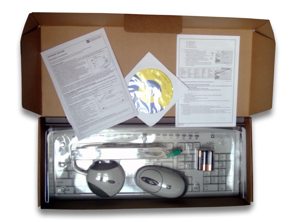 - Пять алкалиновых элементов питания Duracell (размер АА) для питания мыши (2 шт.) и клавиатуры (3 шт.).