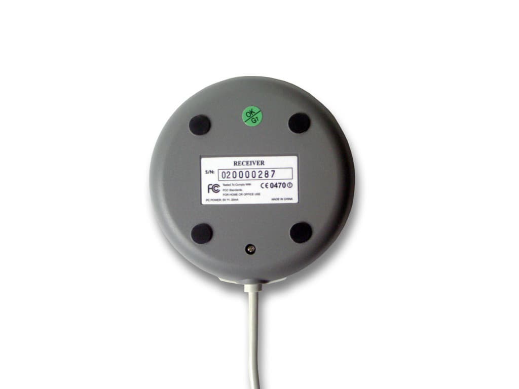 Очень хорошо, что дизайн приемника выдержан в едином с остальными компонентами набора стиле. Но, на мой взгляд, смотрится он не очень солидно. Эдакая летающая тарелка с кабелем и глазом своего единственного светодиодного индикатора. Индикатор этот, кстати, трехцветный, и во время работы, если он находится в поле вашего зрения, может весьма сильно раздражать своим разноцветным перемигиванием. А без перемигивания обойтись не удастся, ибо таким образом индицируется активность клавиатуры или мыши. Может быть, кого-то вся эта «цветомузыка» и будет радовать, но лично я, установив этот набор, наверное, заклеил бы светодиод какой-нибудь матовой липкой лентой, дабы уменьшить яркость его свечения.