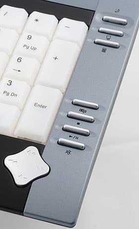 Узкие дополнительные клавиши мне кажутся не совсем удачными — слишком тугой ход и низкая чувствительность заставляют вдавливать клавишу до конца, вместо того, чтобы слегка к ней прикасаться, да и попасть по ней трудней, чем, например, по круглой.