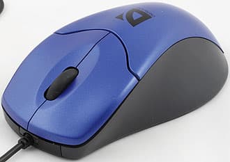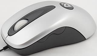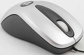 Над текстом явно поработал профессионал :) Впрочем, многие слова рекламные отделы всех фирм говорят обо всех мышах, поэтому пока мы на них особого внимания обращать не будем (лучше проверим), а описать внешний вид — это что-то новое. Хотя визуально ничего особо нового нет — это классическая недорогая двухкнопочная мышь с совершенно обычным «лысым» резиновым скроллером, по совместительству работающим третьей кнопкой. Форма достаточно удобна, однако, в основном, для обладателей рук среднего и меньшего размера — посему я и сказал, что мышь скорее для мальчиков, чем для взрослых мужчин: многие из них обладают такими лапищами, что проблема подбора размера мыши действительно становится проблемой.