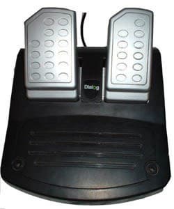 Начать хотелось бы с самого простого с педалей. От бюджетного руля, конечно, не стоит ждать алюминиевых педалей, специальных утяжелителей. Блок педалей целиком пластмассовый и как следствие очень легкий. Но небольшая масса компенсируется мягкими пружинами, что тоже не есть плюс. Даже если просто положить ногу на педаль она утопится на 70%. А я предпочитаю держать ноги на педалях скорости большие, повороты резкие… Еще одно неудобство небольшой ход педалей (50-60 градусов), что обуславливается небольшим углом педалей к полу в не нажатом положении. Видимо это было сделано для того, чтобы блок педалей не ползал по полу. Что ж, «Диалог» своего добился проблем со скольжением педалей по линолеумному полу не было.