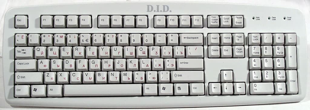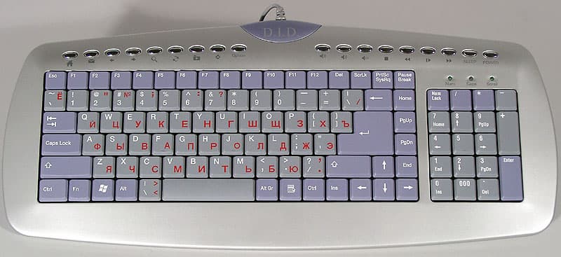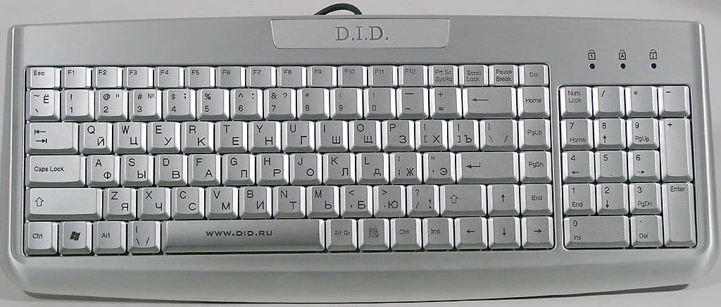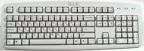 По фотографии видно, что описывать тут особо нечего :) Это совершенно стандартная 104-х клавишная мембранная модель с интерфейсом PS/2. Подобные клавиатуры давно стоят менее 10 долларов (чаще — в районе 5), редко покупаются отдельно (если только в офис), зато их очень «любят» сборщики компьютеров. Собственно, именно поэтому факт наличия такой модели в линейке D.I.D. радует — это значит, что компания действительно серьезно занимается рынком клавиатур, ориентируясь не только на капризного розничного покупателя, требующего «красивостей и наворотов», но и на другие части рынка.