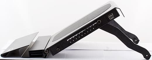 Сегодня мы рассмотрим немного другой подход к улучшению оборудованного мобильным компьютером рабочего места. Как средство улучшения эргономики AirGear от Floston представляет собой компромиссное решение: мы продолжаем пользоваться встроенной клавиатурой. Зато появляется возможность отрегулировать уровень наклона последней, что сильно увеличивает удобство. Но вот экран, пусть и оказывается в данном случае повыше, все равно расположен менее удобно, чем в случае решения от Logitech, да еще и по-прежнему жестко привязан к клавиатуре. Это минусы, которые можно решить только покупкой дополнительной отдельной клавиатуры. А плюсом является то, что даже в этом случае все равно есть смысл использовать данную подставку, причем не только для того, чтобы поднять дисплей — она обеспечивает ноутбуку мощное охлаждение.